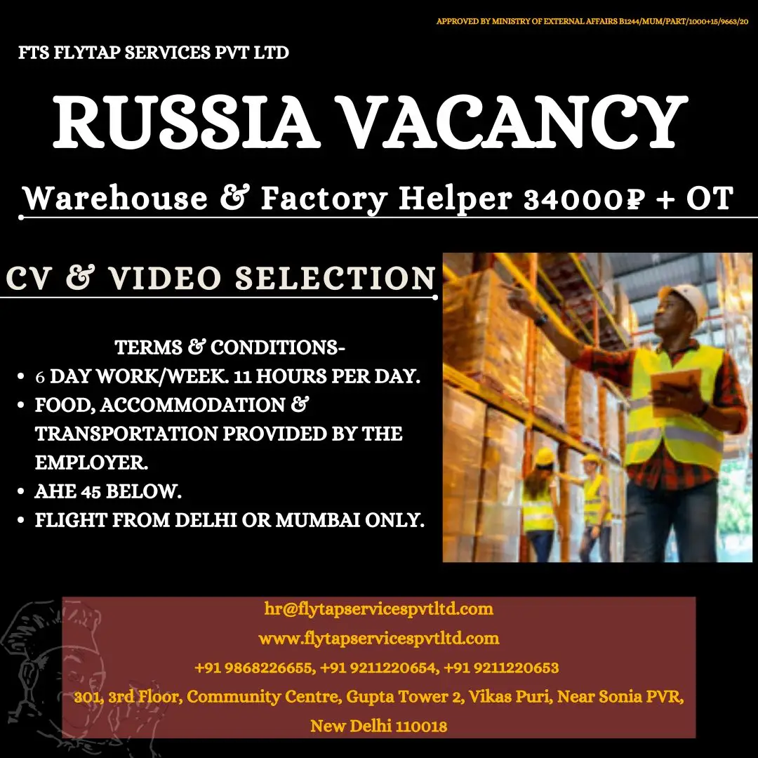Job Opportunity in Russia – Warehouse & Factory Helper