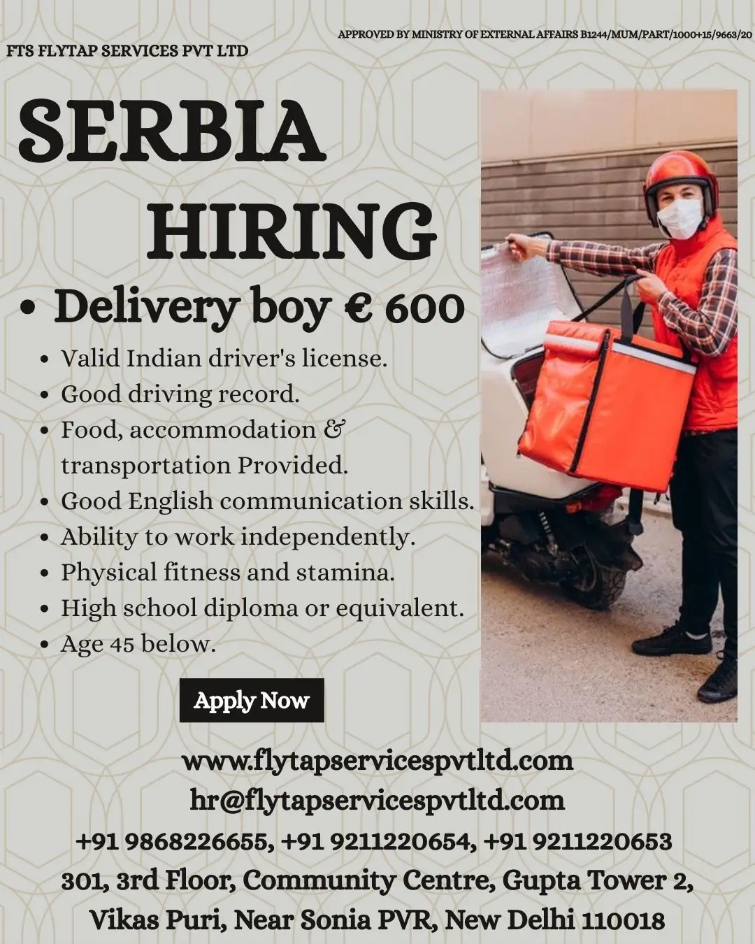 Job Opportunity in Serbia – Delivery Boy (€600 Salary)