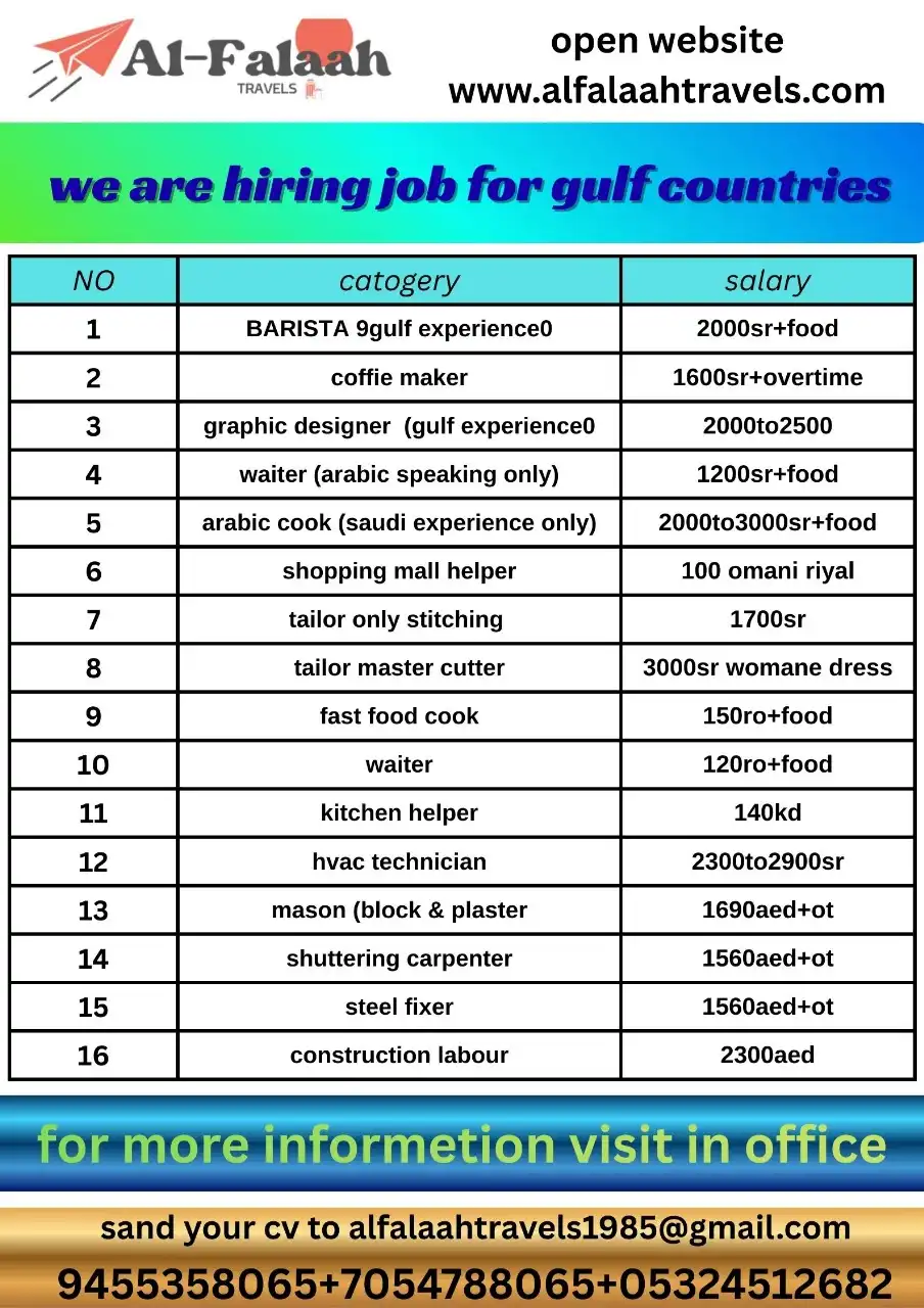 📧 Email your CV: alfalaahtravels1985@gmail.com