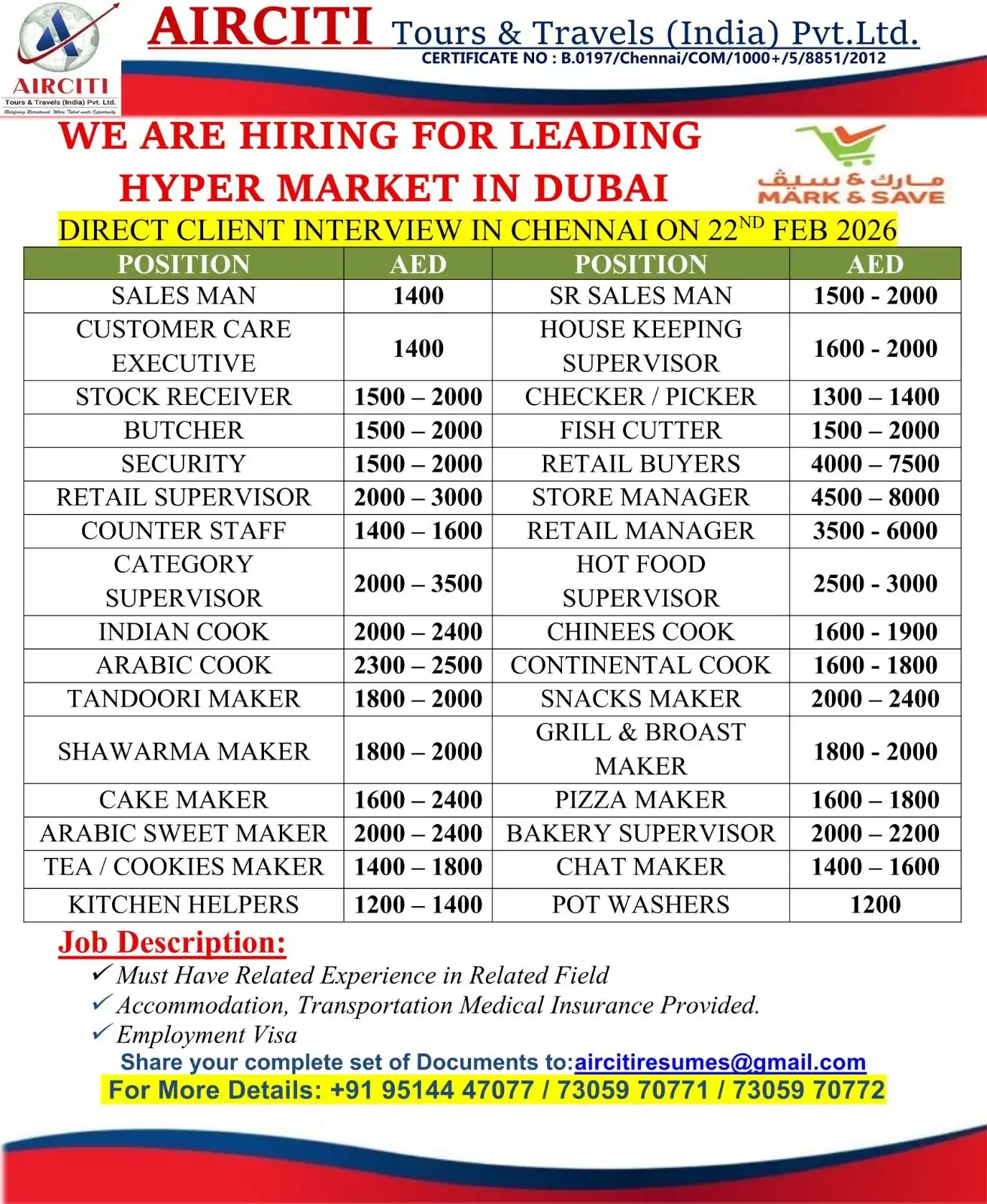 Available Positions & Salary (AED):